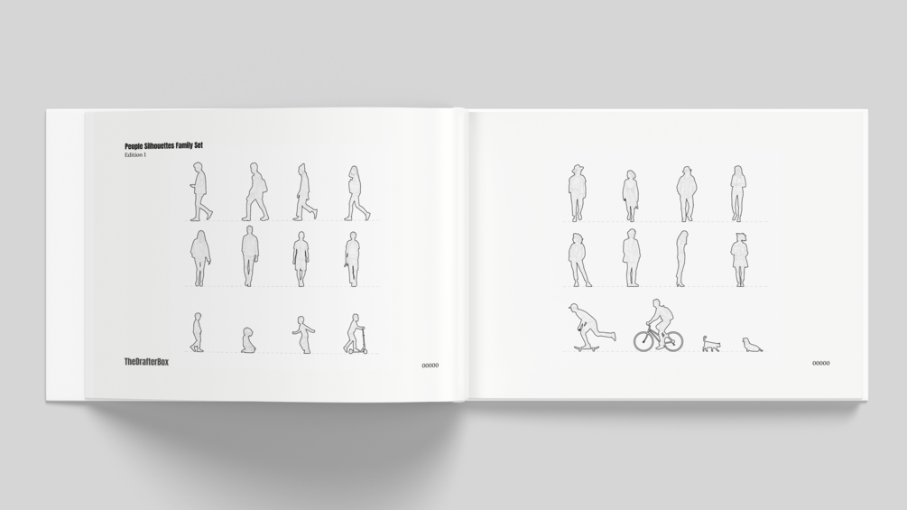 Includes silhouettes in various orientations and activities. Ideal for architectural sections and facades, conceptual presentations, residential, urban or landscape projects.